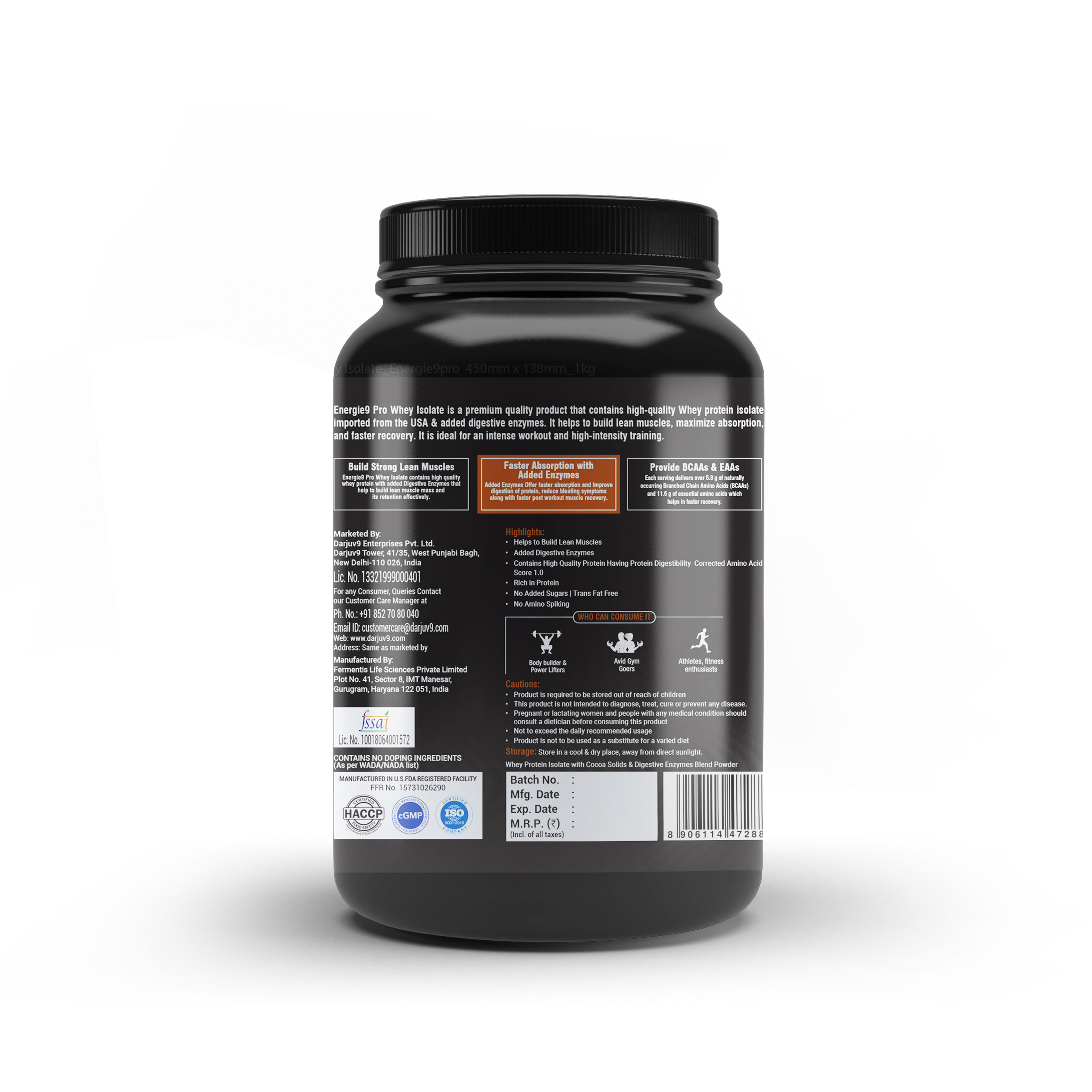 Energie9 Pro Whey Isolate is a premium quality product that contains high-quality Whey protein isolate imported from the USA & added digestive enzymes. It helps to build lean muscles, maximize absorption, and faster recovery. It is ideal for an intense workout and high-intensity training.